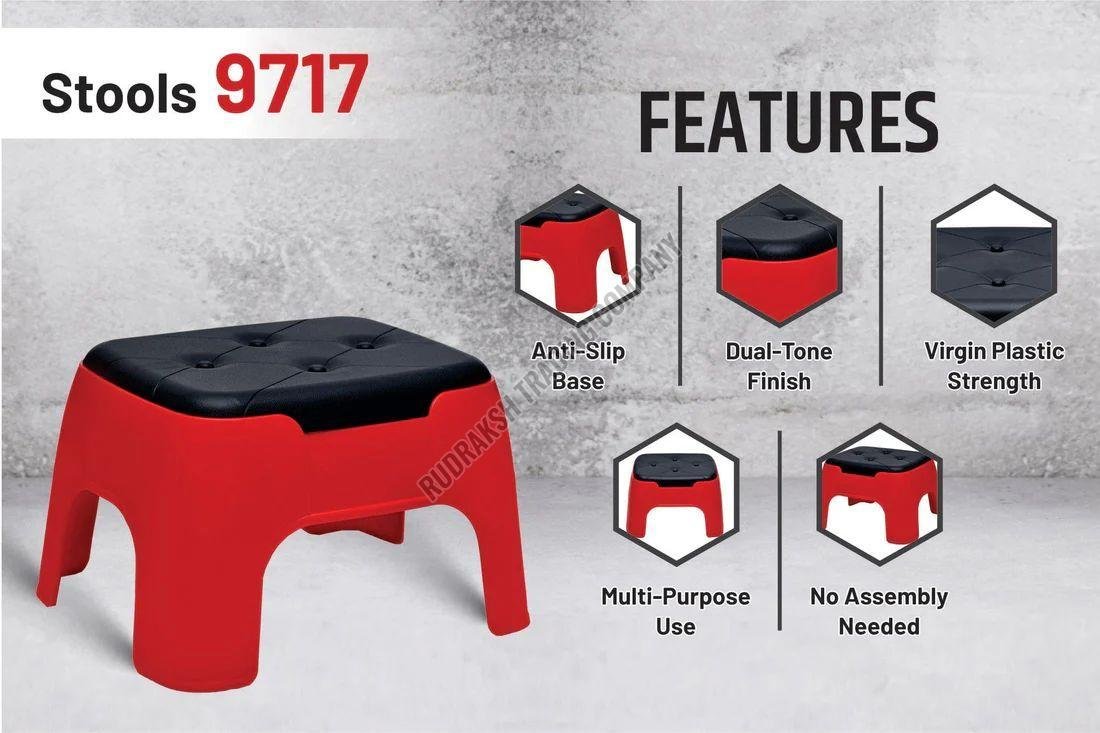 Crafted from premium, high-quality plastic, this stool combines durability with a modern design. It is available in a wide range of dual-tone colours including Coffee & C.Brown, Blue & White, Red & White, P.Green & White, and more, making it easy to match your home’s aesthetic.